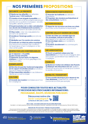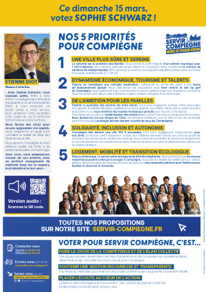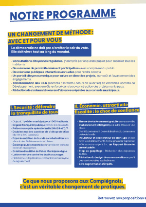 Ces derniers mois, les habitants sont nombreux à m’interpeller, à m’écrire, à me faire part de leurs inquiétudes pour l’avenir de notre ville, mais aussi des espoirs qu’ils portent en moi. Ces témoignages m’ont confortée dans une conviction simple et forte : Compiègne a besoin d’une nouvelle impulsion sincère et authentique. (…)